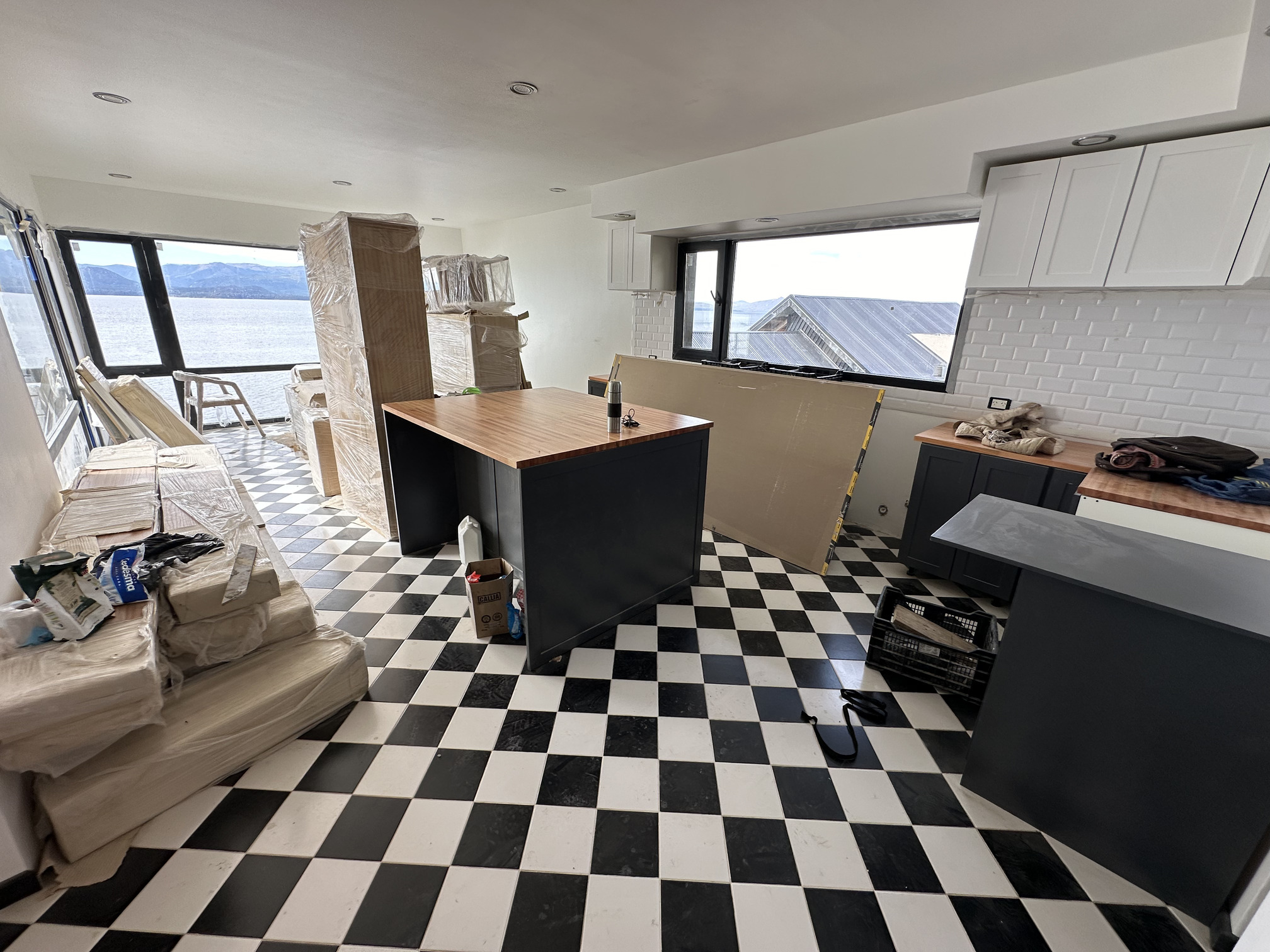 Construcción residencial sobre el lago Nahuel Huapi, San Carlos de Bariloche, Patagonia Argentina.