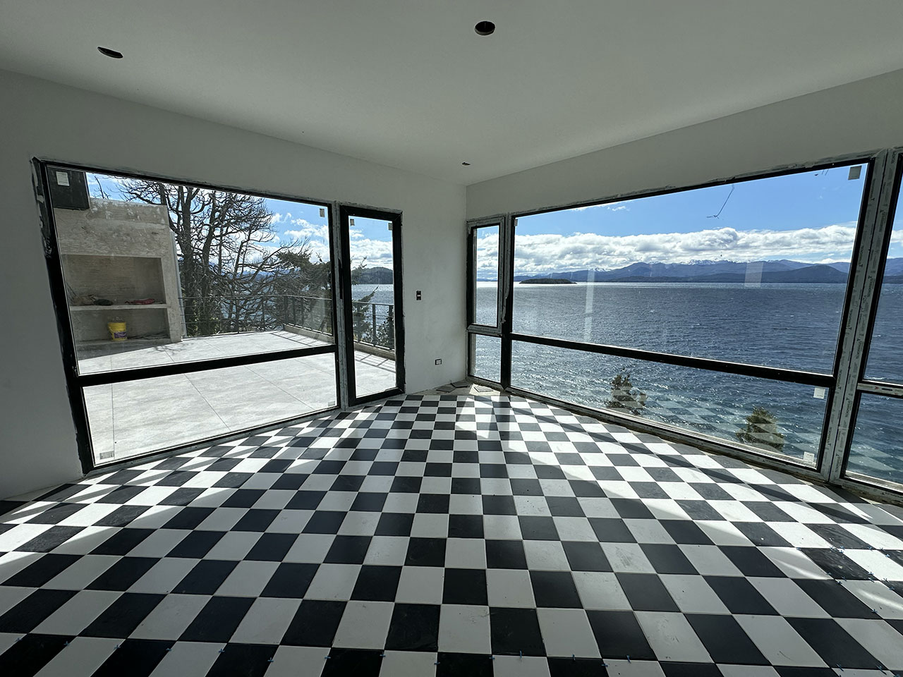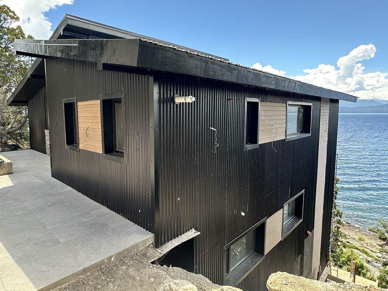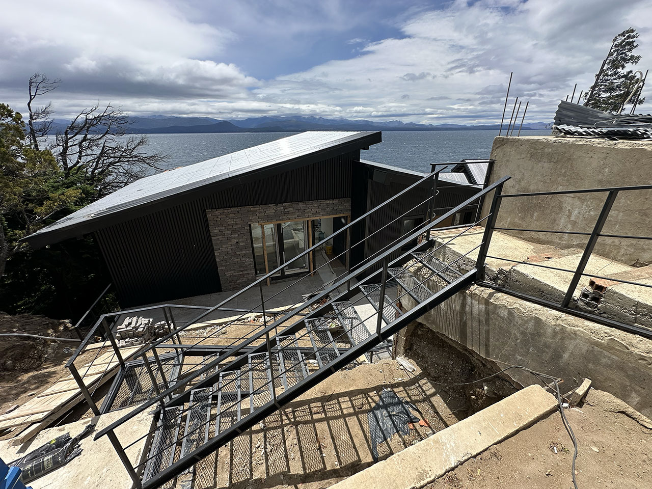 Construcción residencial sobre el lago Nahuel Huapi, San Carlos de Bariloche, Patagonia Argentina.Superficie cubierta de 300m2.Piscina al lago y deck.