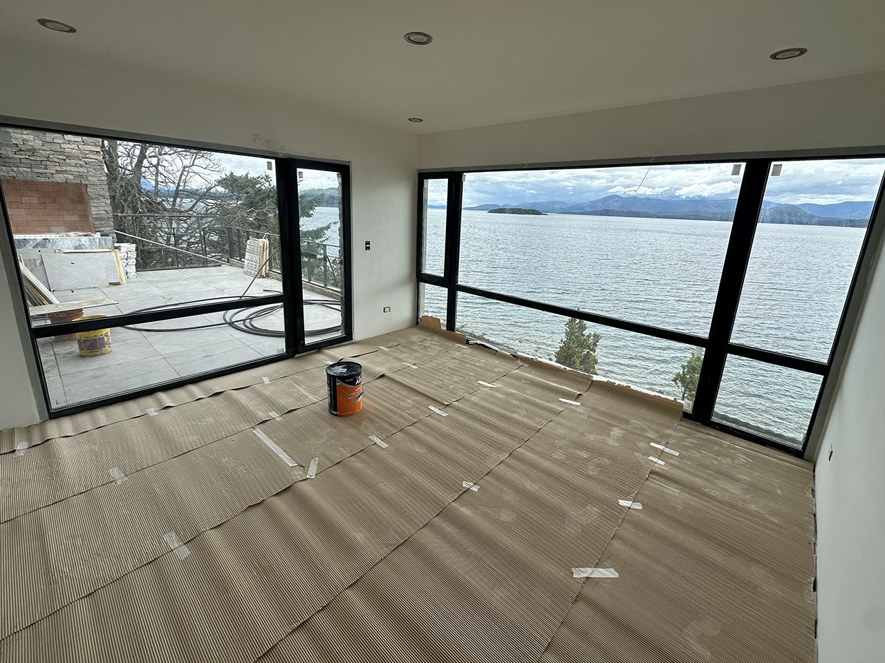 Construcción residencial sobre el lago Nahuel Huapi, San Carlos de Bariloche, Patagonia Argentina.