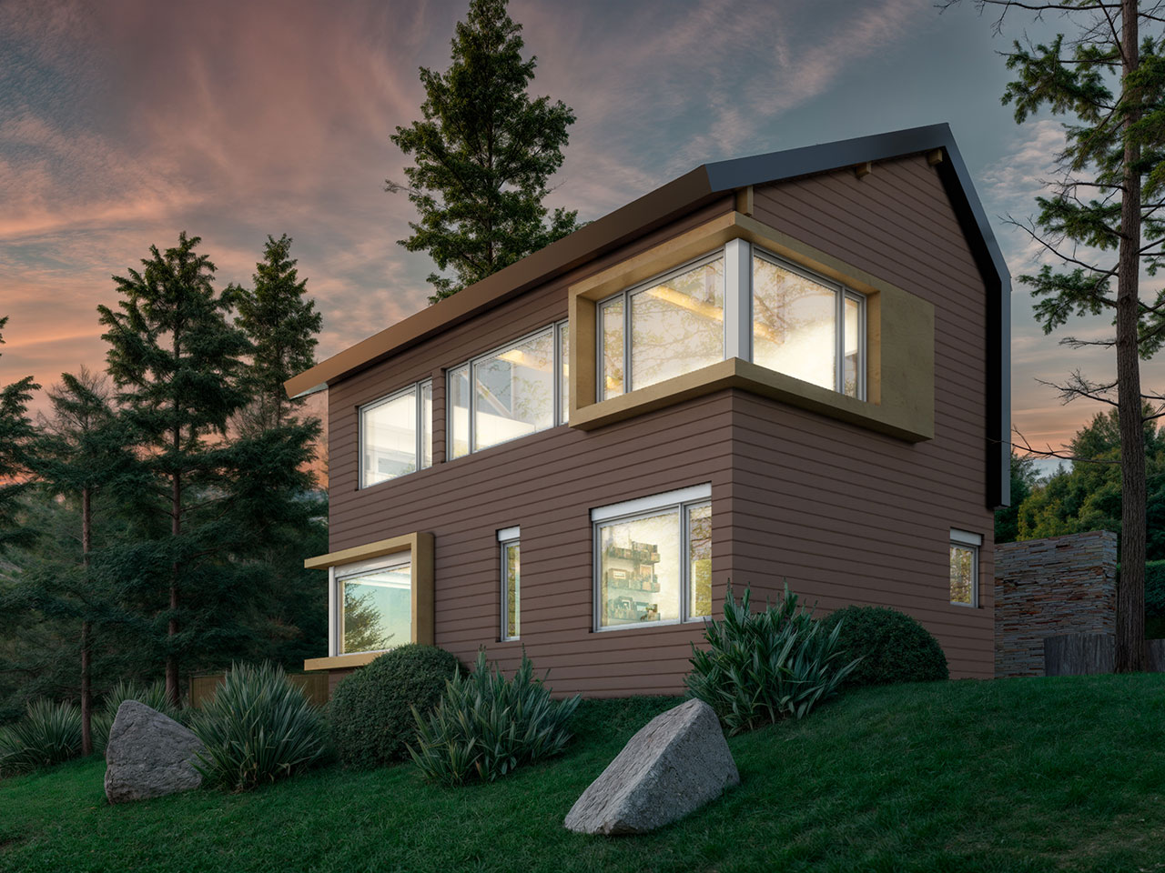 Ubicada en la Península de San Pedro, zona oeste de Bariloche, esta vivienda en dos plantas se implanta sobre un lote sobre costa y vista directa al lago.