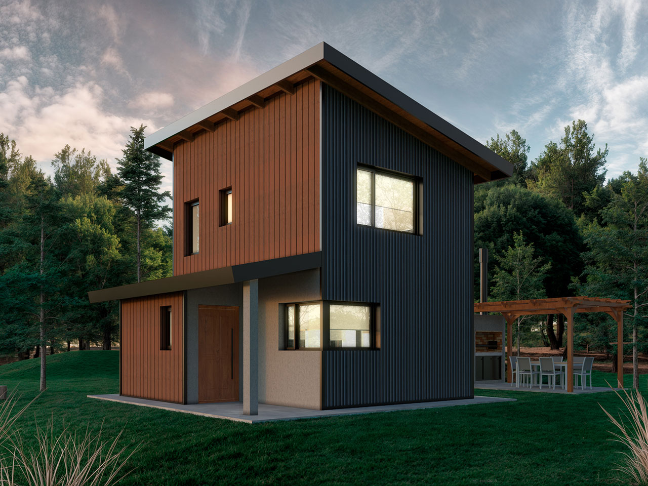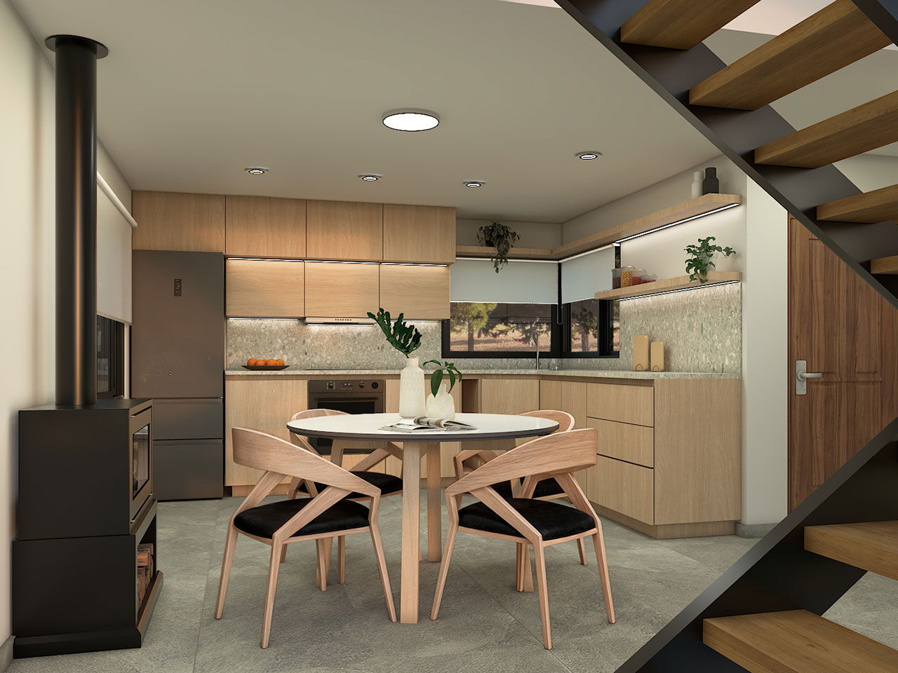 Con una superficie cubierta de 60 m², distribuida en dos plantas sobre un lote de 500 m², el proyecto fue pensado para aprovechar cada espacio y disfrutar de la vida patagónica.