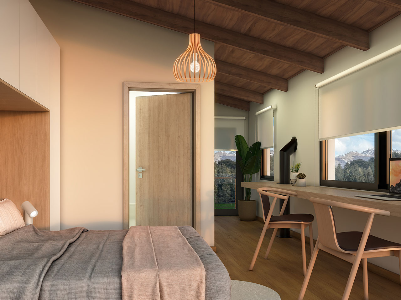 ▪️Detalles personalizados: placard de diseño en cabecera, grandes ventanales orientados al noroeste que enmarcan las vistas naturales aprovechando al máximo el Sol al máximo.